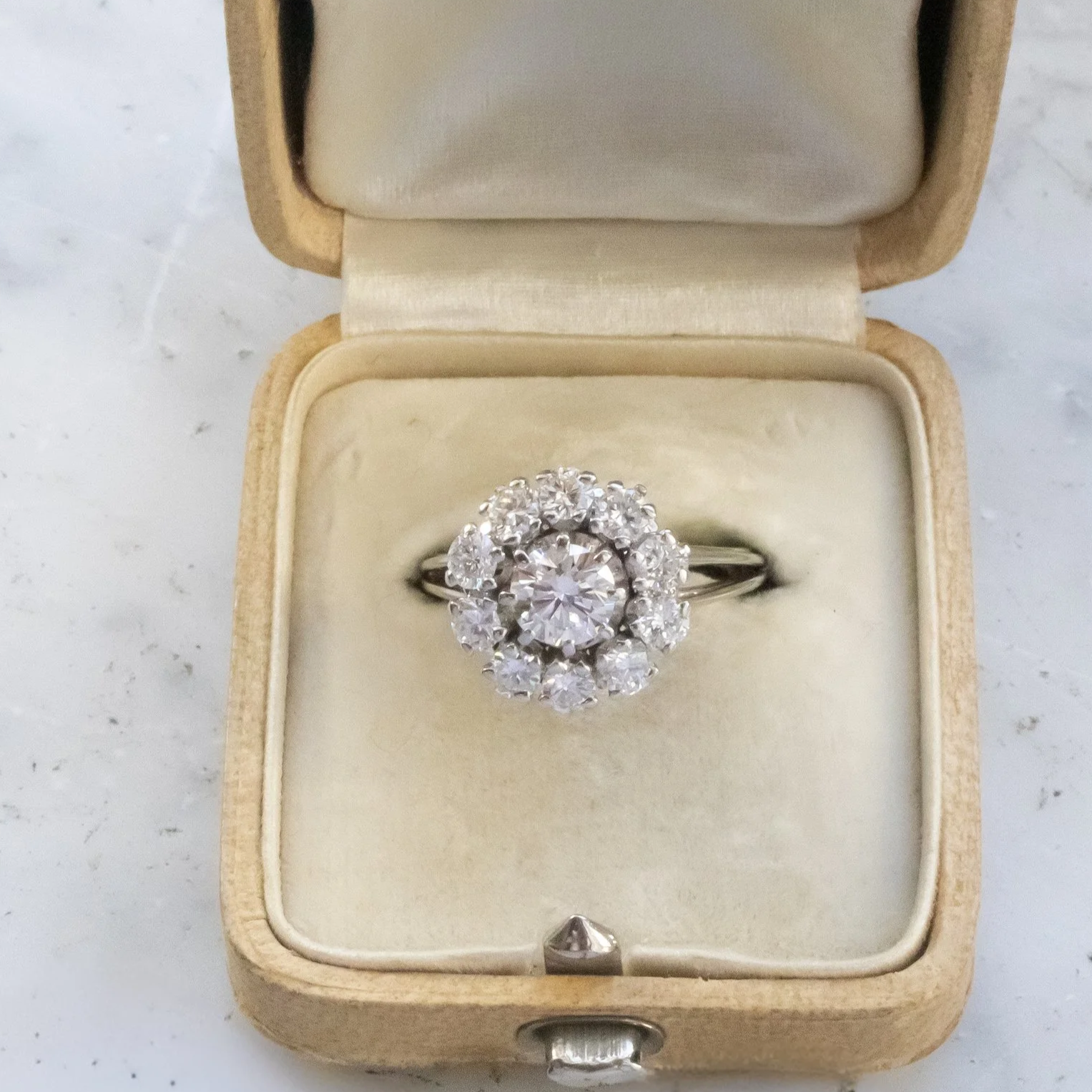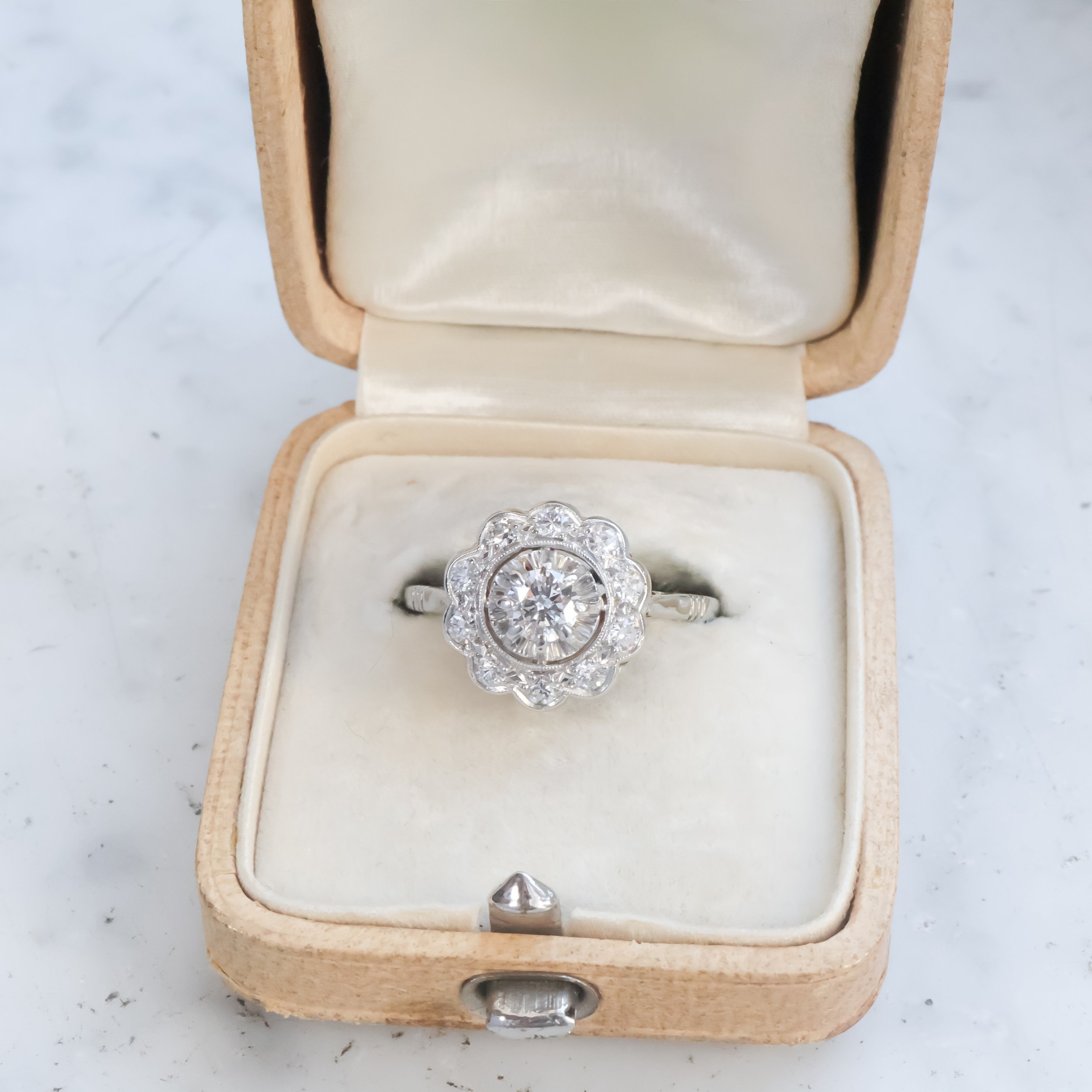 Marguerite Art Déco en platine et diamants de taille ancienne