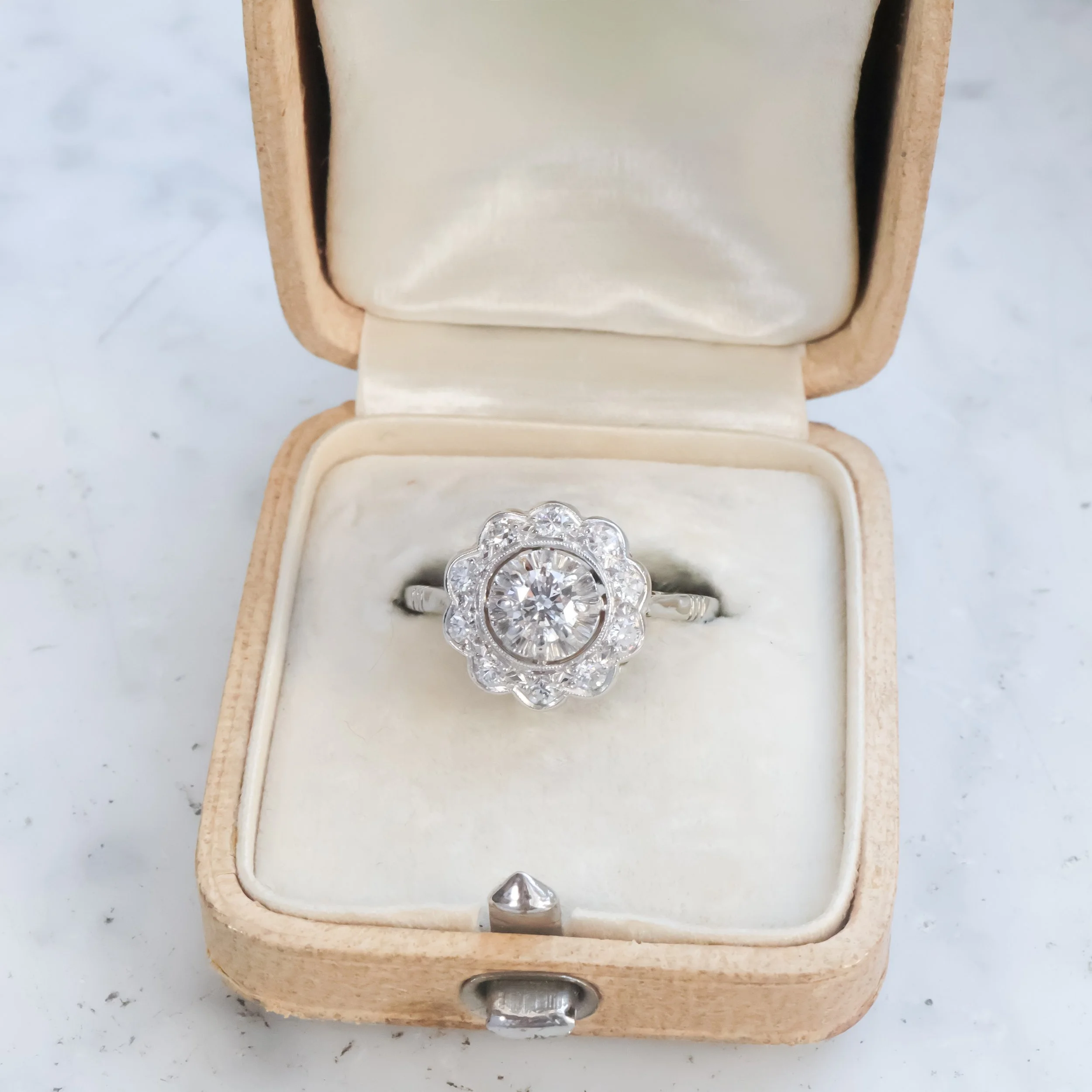 Délicate marguerite en or 750 millièmes d’époque Art déco ornée de 11 diamants dont le poids total est estimé à environ : 0,45 carat